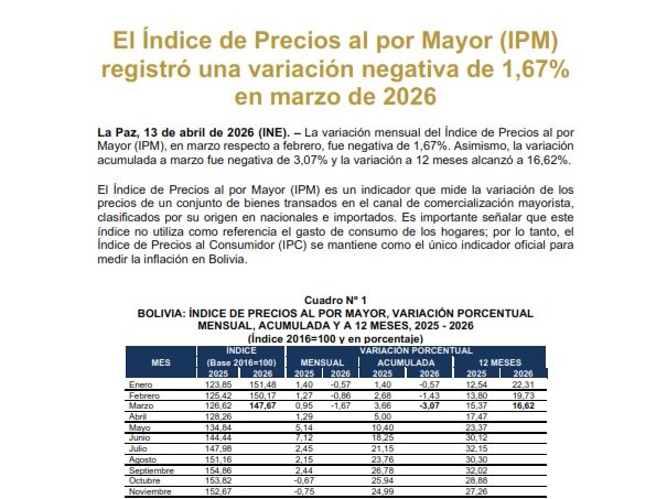 La variación porcentual del IPM del mes de marzo de 2026, fue de -1.67%