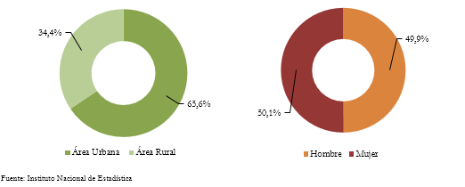 57,6% de la población orureña está comprendida entre los 0 y 29 años de edad, 29,3% corresponde a hombres y 28,3%, a mujeres.