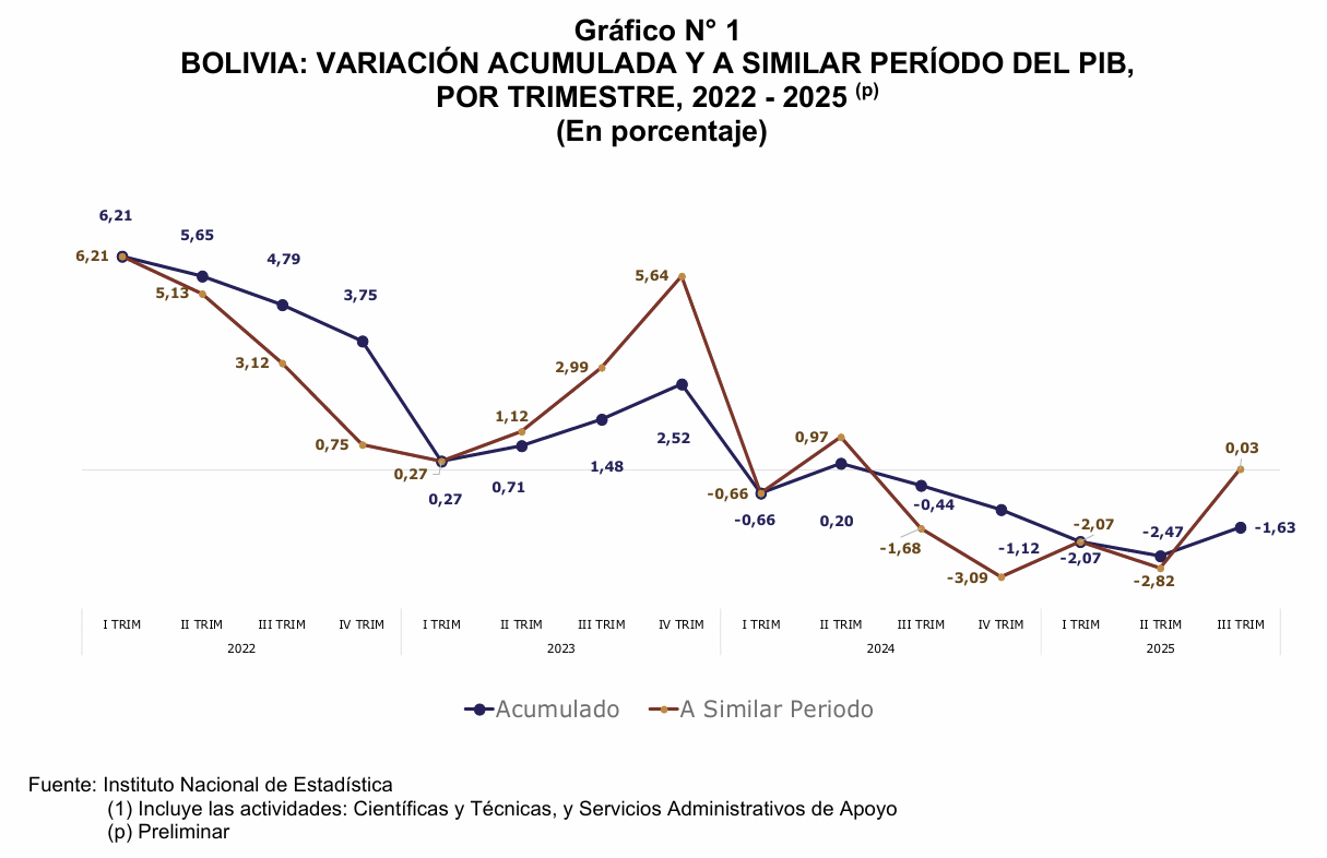 Al tercer trimestre de 2025 el PIB registró una caída acumulada de 1,63%