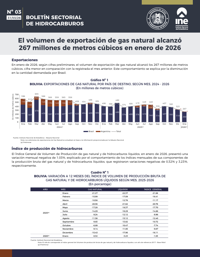 Boletín Sectorial de Hidrocarburos N° 3/26