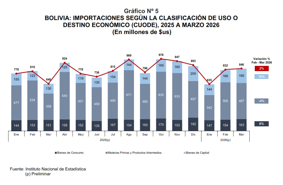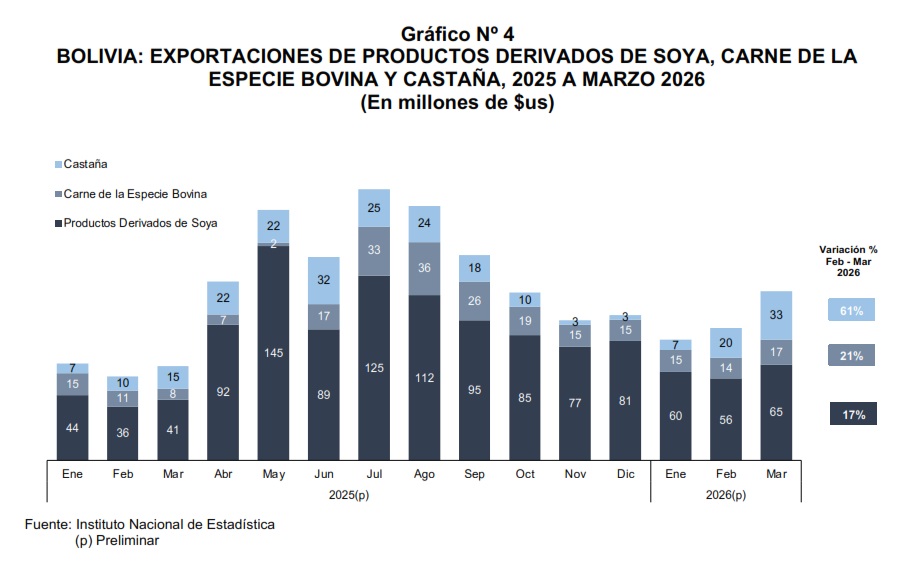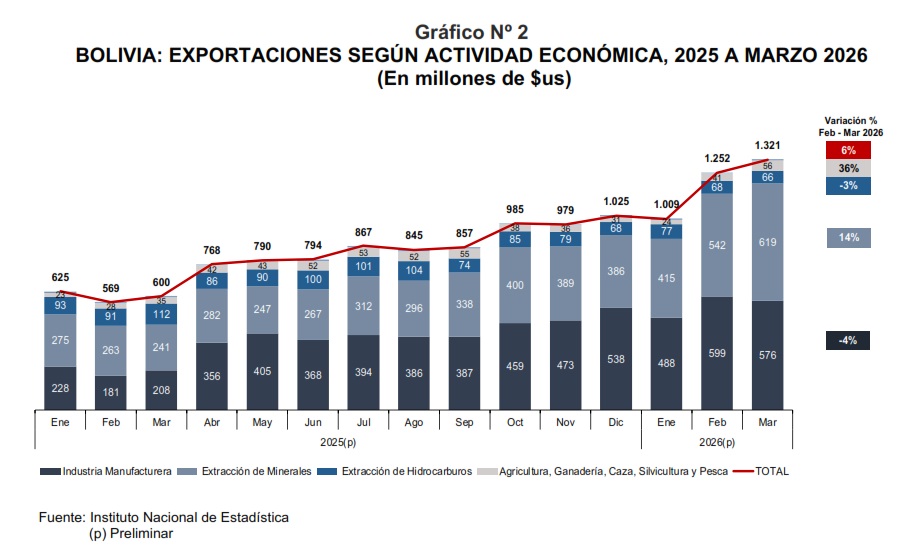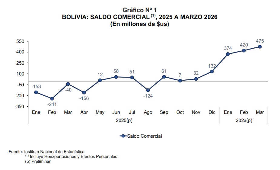 Bolivia registró un superávit comercial de $us475 millones en marzo de 2026