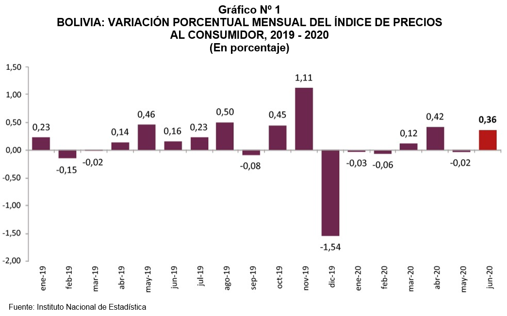 La Paz, 5 de julio de 2021 (INE).- En junio de 2021, el Índice de Precios al Consumidor (IPC) registró una variación positiva de 0,01% respecto a mayo. La variación acumulada a junio fue positiva de 0,29% y a doce...