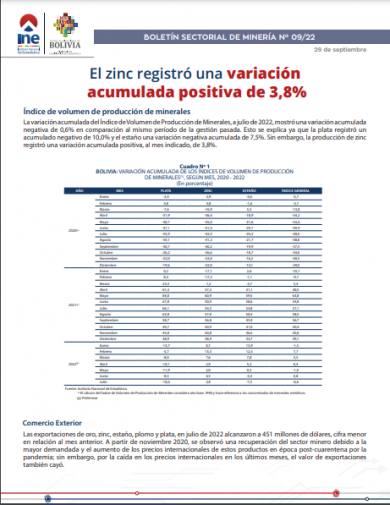 Boletín Sectorial Minería N° 09/22
