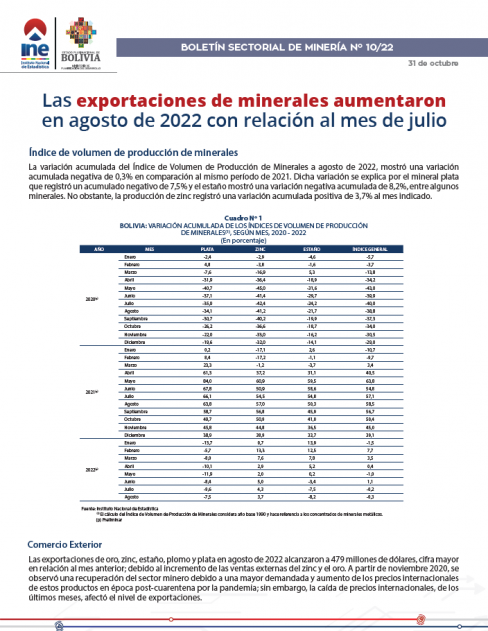 Boletín Sectorial Minería N° 10/22