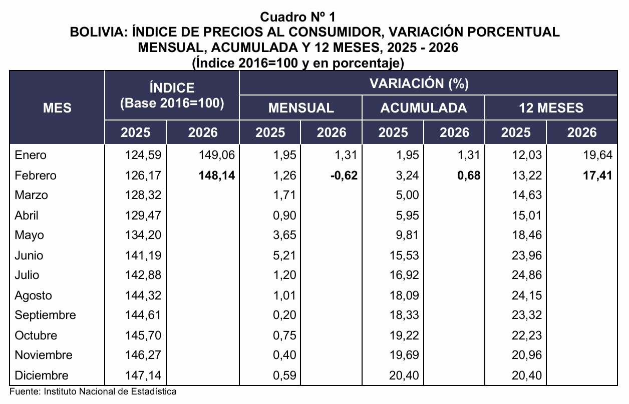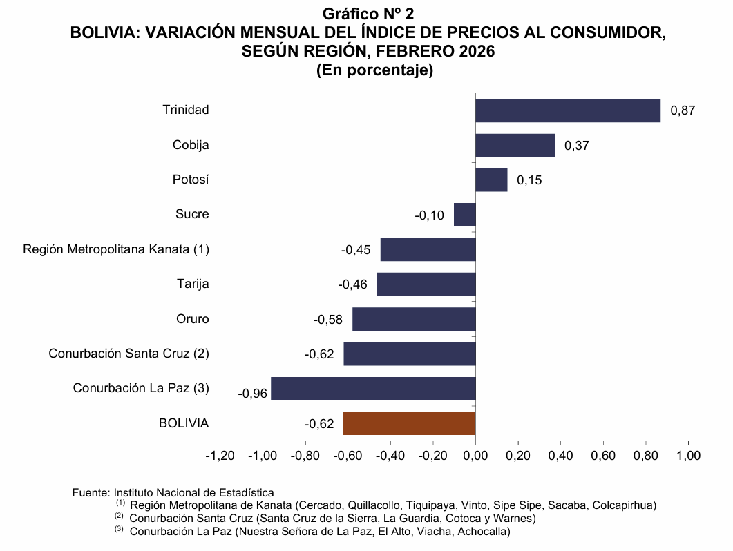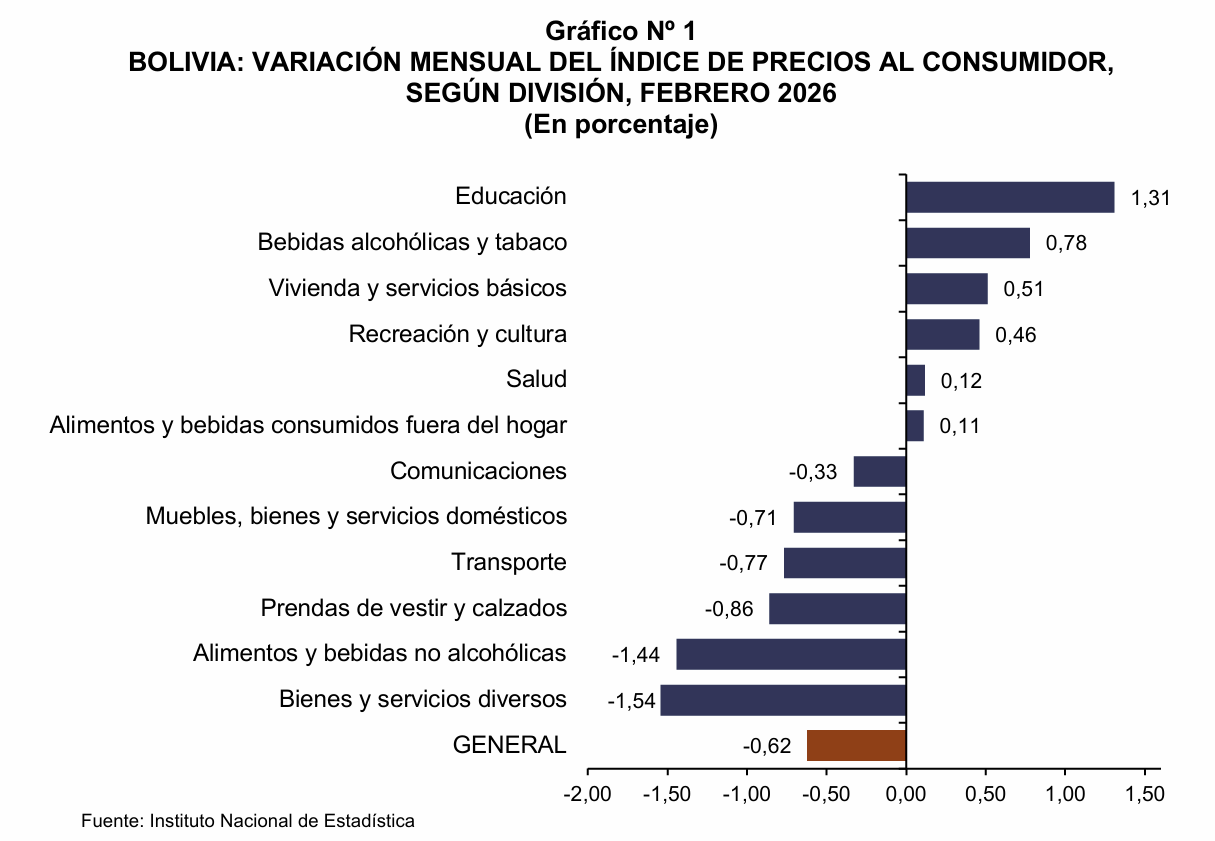El Índice de Precios al Consumidor de febrero registró una variación negativa de 0,62%