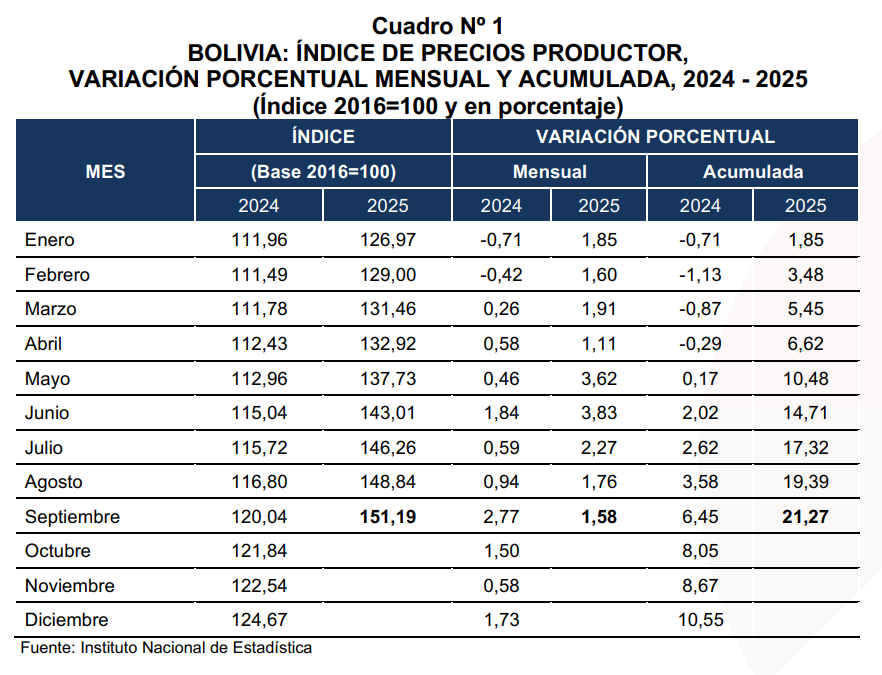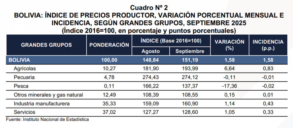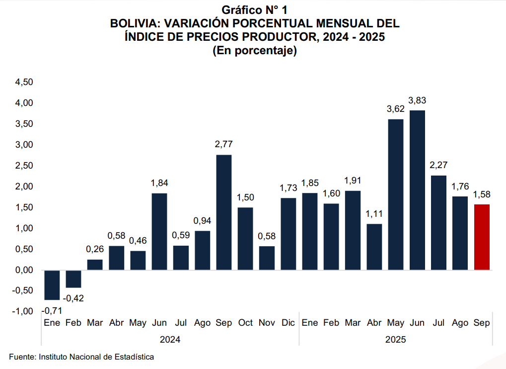 El Índice de Precios Productor registró un aumento de 1,58% en septiembre de 2025
