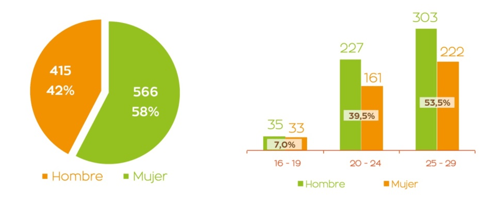 De este número, el 53,5% corresponde a jóvenes que tienen entre 25 y 29 años.