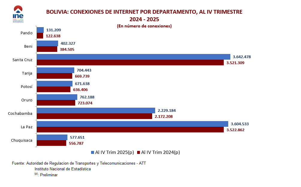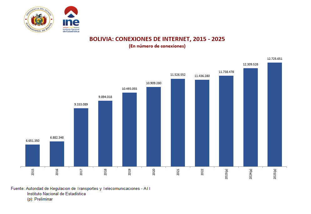 Las estadísticas de telecomunicaciones, permiten conocer el comportamiento económico del sector a nivel nacional y por departamento, sirviendo de insumo para el cálculo de las cuentas nacionales. Su fuente de información son los registros administrativos de la Autoridad de Regulación y Fiscalización de Telecomunicaciones y Transportes ATT.