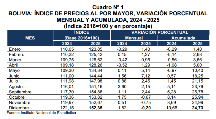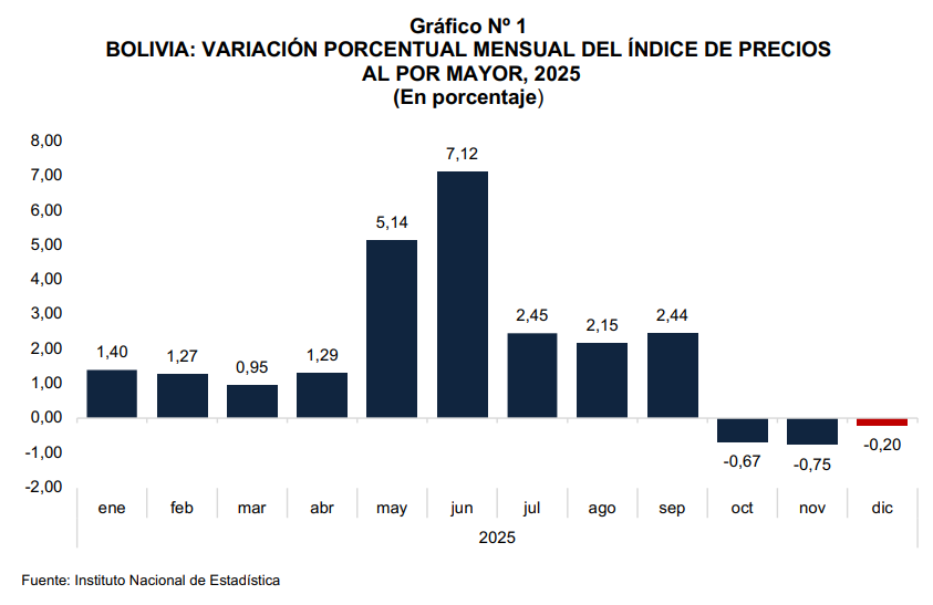 Índice de Precios al por Mayor bajó 0,20% en diciembre de 2025