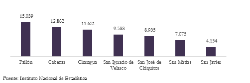 A nivel departamental, en Pailón se registra la mayor cantidad de caballos con 15.039 animales. Otros municipios que destacan en el departamento son Cabezas, Charagua y San Ignacio de Velasco.