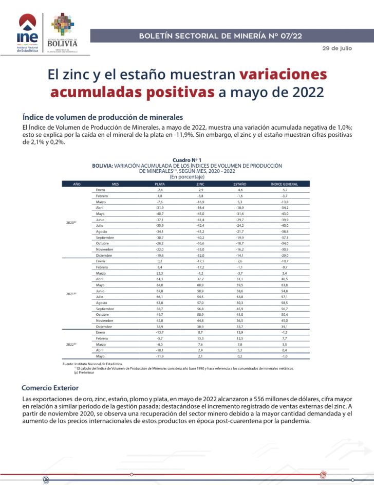 Boletín Sectorial Minería N° 07/22